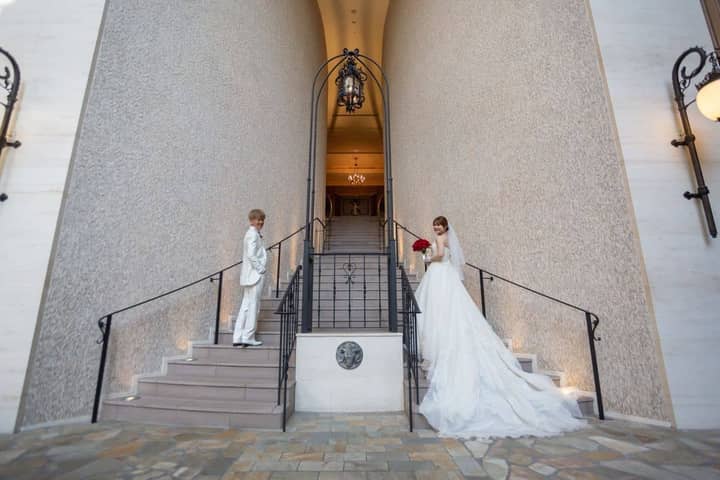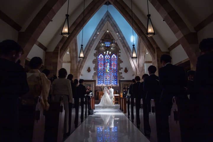 チャペルのおすすめポイントは、白い大理石のバージンロードです!ステンドグラスに光が反射して、とても綺麗に見えました。