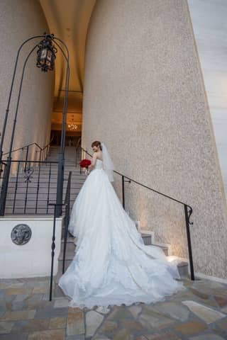 式場選びでは、スタッフさんの対応が決め手となりました。準備期間中、プランナーさんとの打ち合わせは毎回楽しくて、充実した時間を過ごせましたし、衣装担当の方には、ヘアメイクや小物について親身に相談に乗っていただきました。